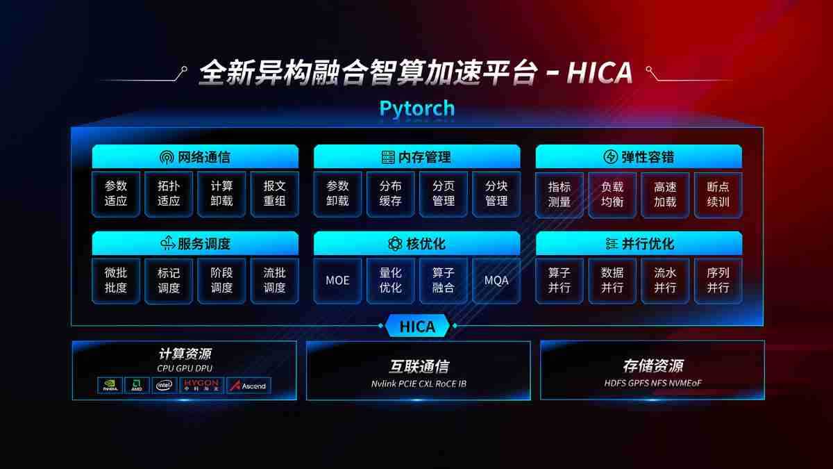 通过自研的服务层、、中间适配层、、、、以及调度编排算法,,,,采用数据并行、、模型并行等多种并行方式,,,,把并行计算任务进行有效的分解,,,,使其分别由相应的软件栈和算力资源来承接。。。。当GPU资源变化,,,HICA可以实时动态调度计算子任务并调整模型拓扑和架构,,,,以充分聚合各种算力资源。。。。